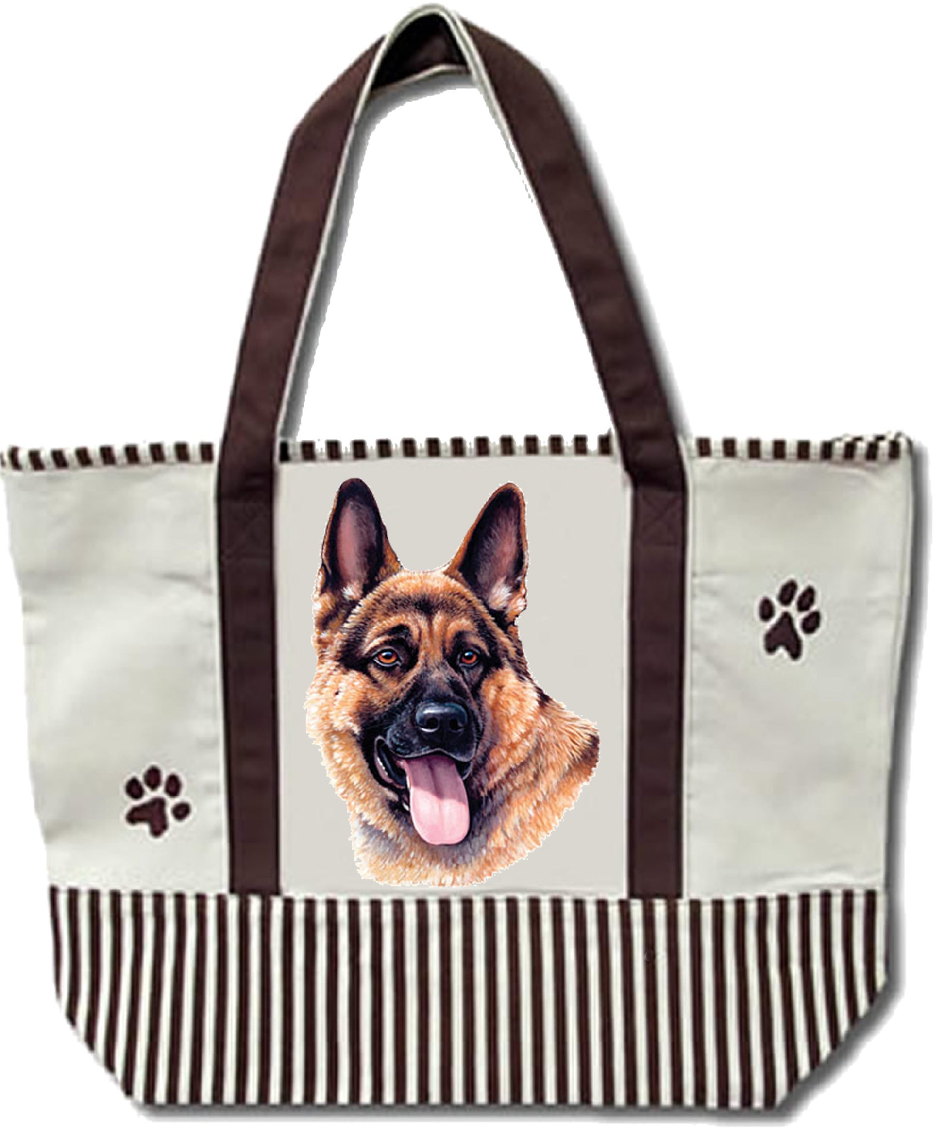 Show your favourite breed in style. This heavy duty German Shepherd tote can be used as an overnight bag, carrying your groceries, a purse, a carrier for your dog's favourite treats and toys, just to name a few. The tote measures 20" x 15" by 7" and has a 7" drop handle. Made of heavy duty cotton, this bag can be washed and is very durable and versatile.