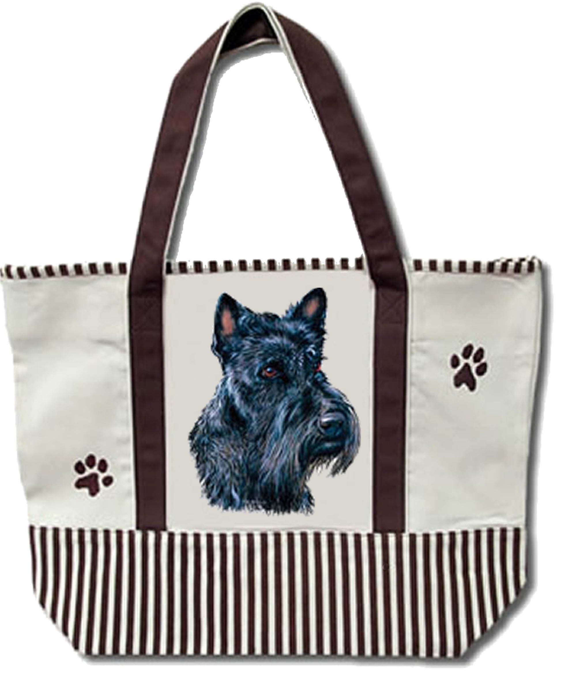 Show your favourite breed in style. This heavy duty Scottish Terrier tote can be used as an overnight bag, carrying your groceries, a purse, a carrier for your dog's favourite treats and toys, just to name a few. The tote measures 20" x 15" by 7" and has a 7" drop handle. Made of heavy duty cotton, this bag can be washed and is very durable and versatile.