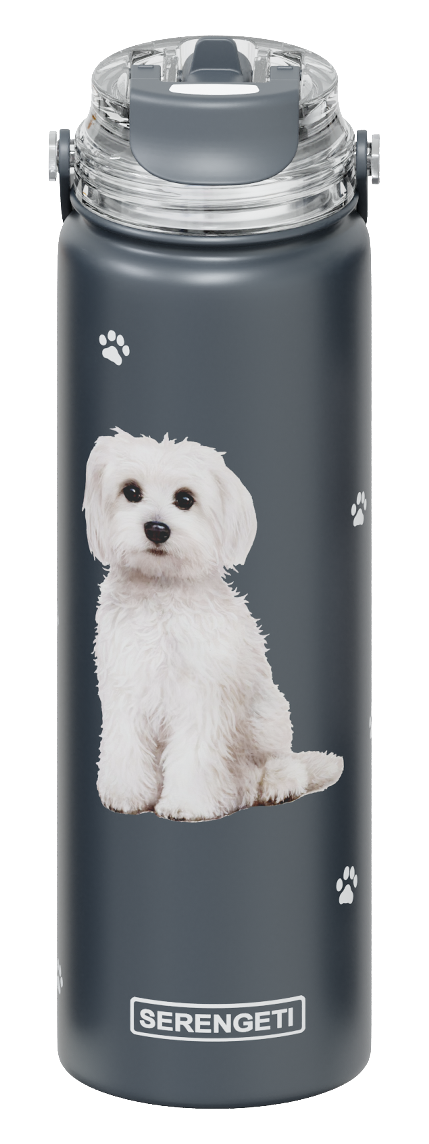 Why not try one of our Maltese Serengeti Water Bottles. This unit beautiful is spill proof and has a sliding top lid with a twist-on cap. It is insulated and has a vacuum sealed double wall, keeping your cold drinks cold for several hours.