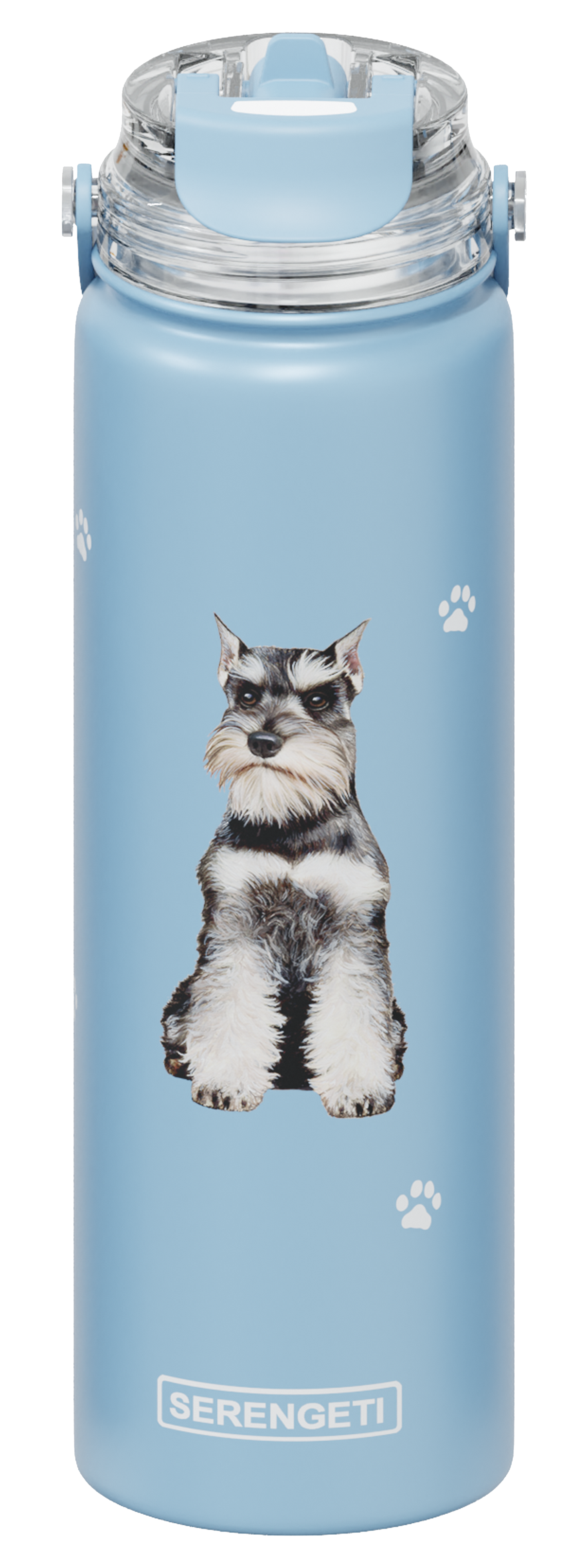 Why not try one of our Schnauzer Serengeti Water Bottles. This beautiful unit is spill proof and has a sliding top lid with a twist-on cap. It is insulated and has a vacuum sealed double wall, keeping your cold drinks cold for several hours.