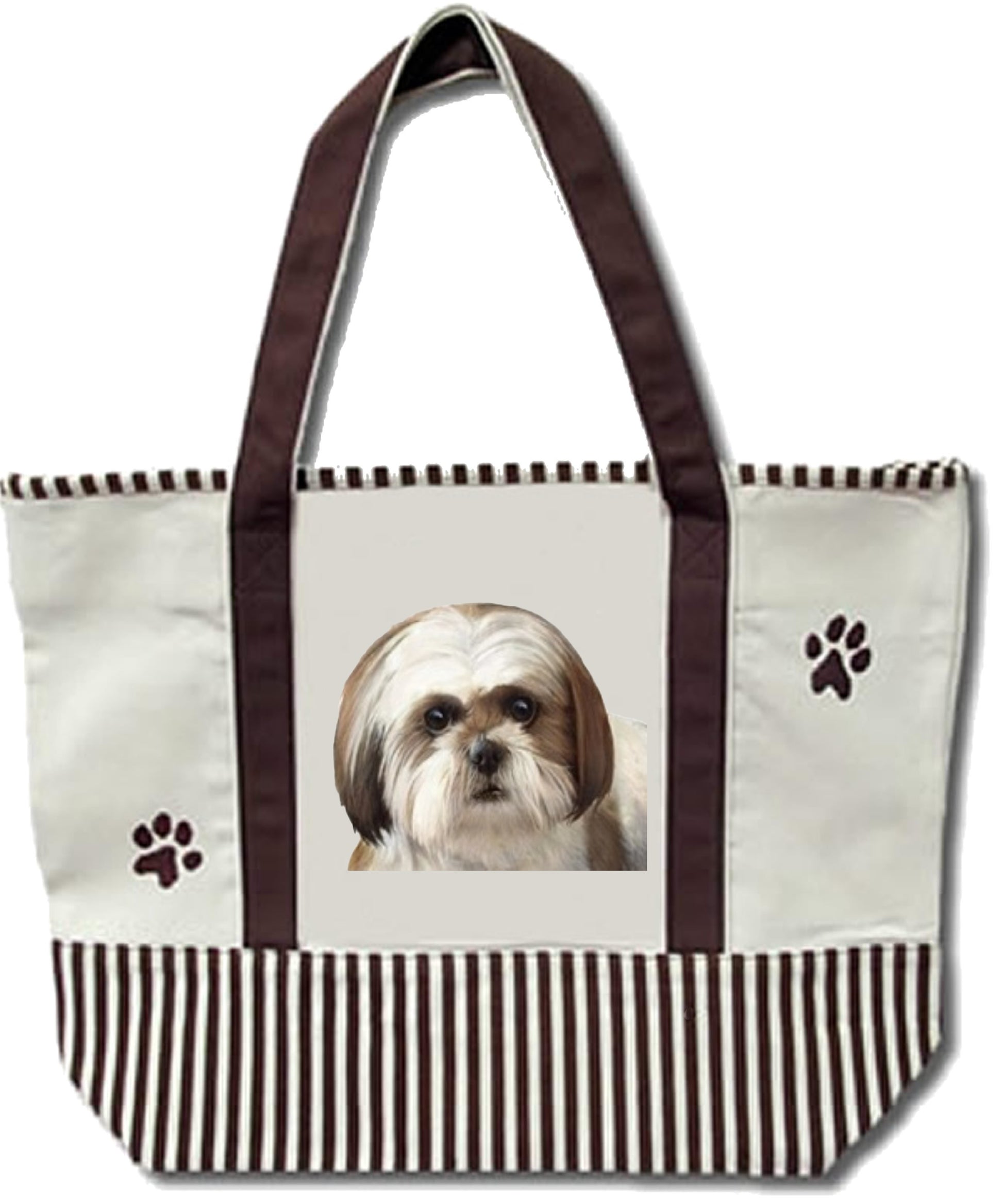 Show your favourite breed in style. This heavy duty Shih Tzu tote can be used as an overnight bag, carrying your groceries, a purse, a carrier for your dog's favourite treats and toys, just to name a few. The tote measures 20" x 15" by 7" and has a 7" drop handle. Made of heavy duty cotton, this bag can be washed and is very durable and versatile.