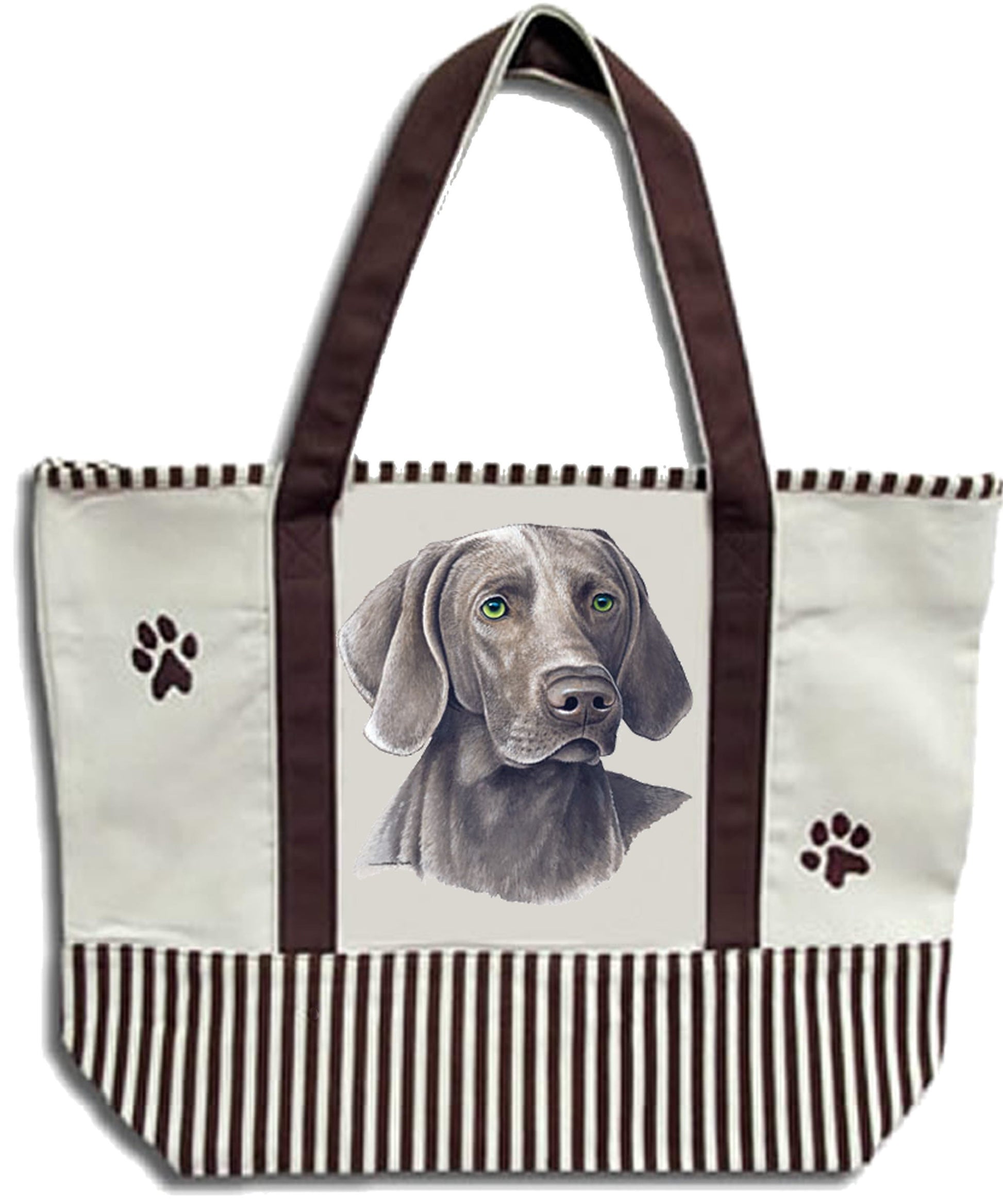 Show your favourite breed in style. This heavy duty Weimaraner tote can be used as an overnight bag, carrying your groceries, a purse, a carrier for your dog's favourite treats and toys, just to name a few. The tote measures 20" x 15" by 7" and has a 7" drop handle. Made of heavy duty cotton, this bag can be washed and is very durable and versatile.